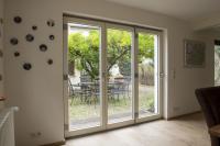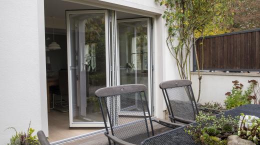Unsere Falt-Schiebe-Türen, das sind bis zu fünf Glasfelder, die geöffnet kompakt in der Ecke des Raumes verschwinden. Das Ergebnis: innen und außen werden eins.
